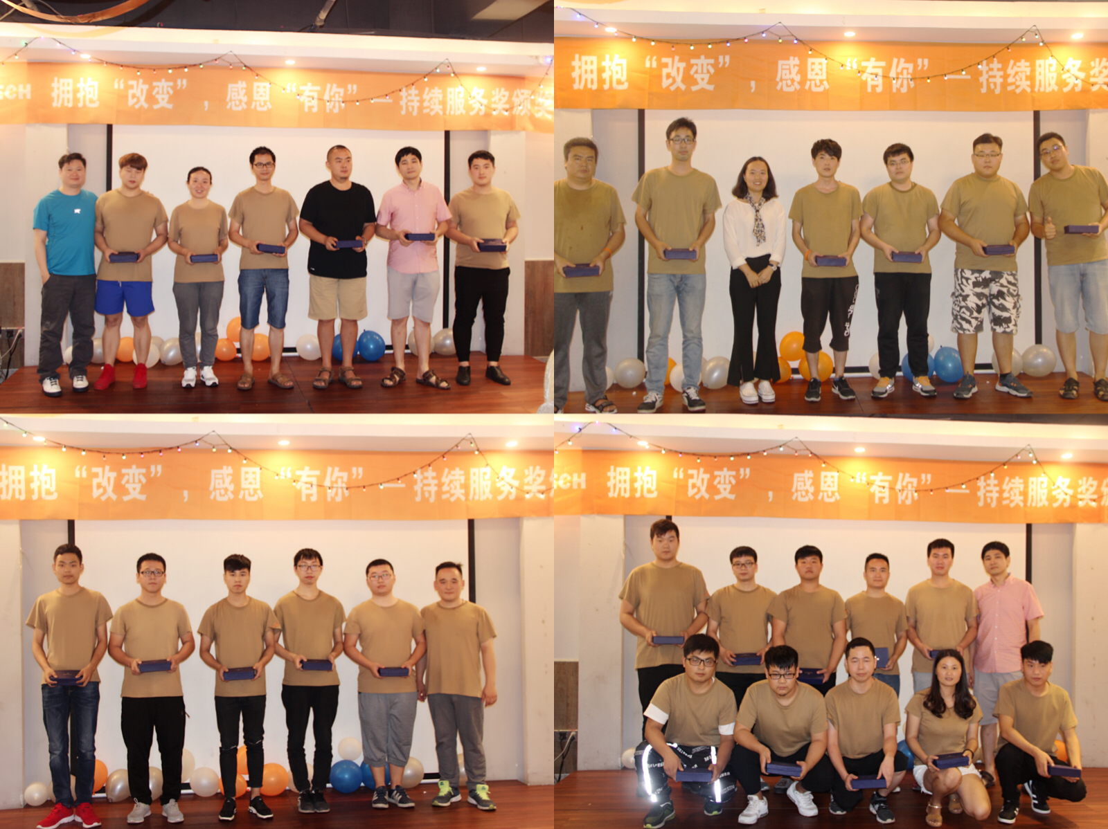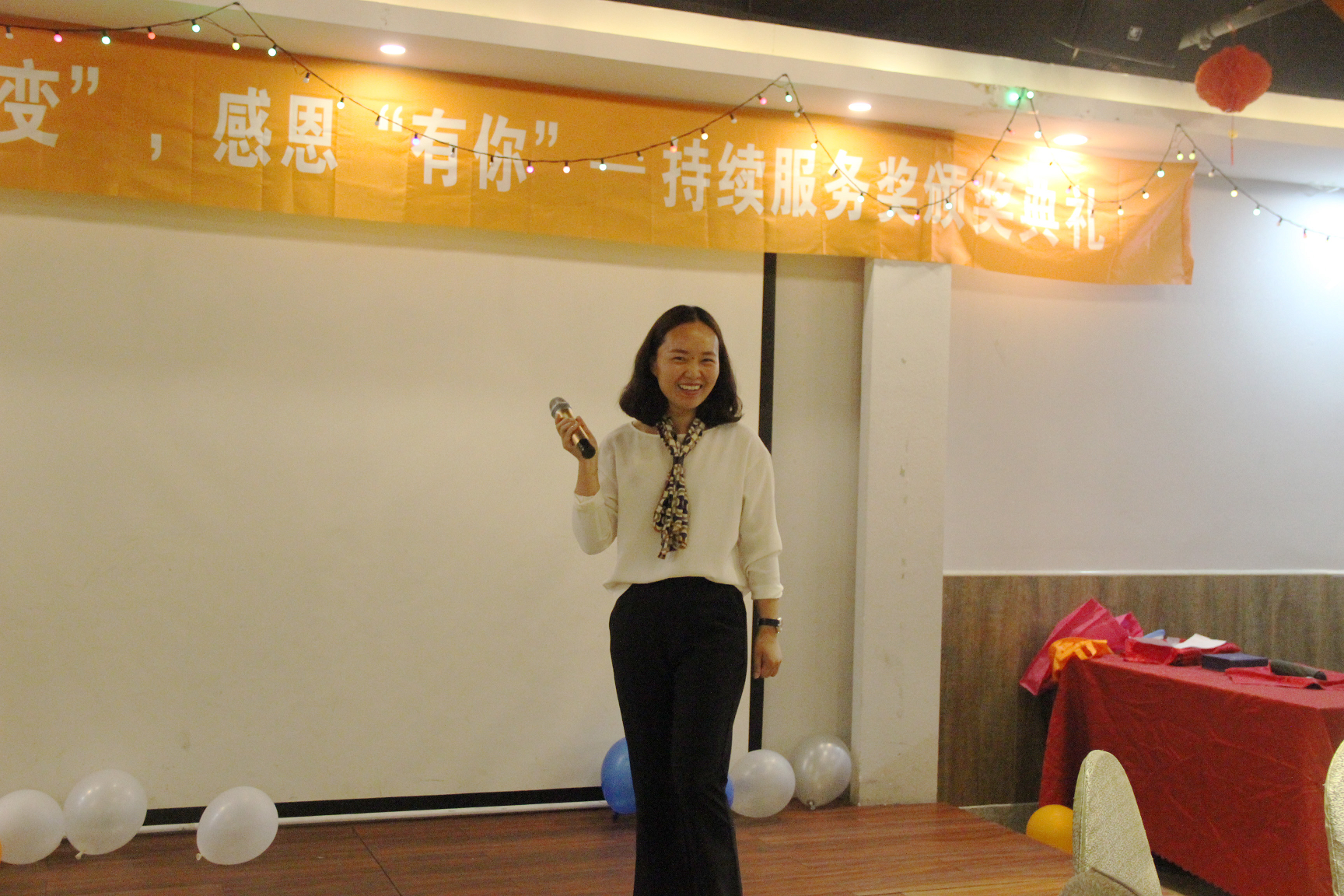 在我们的周围,有这样一些人,他们在平凡的岗位上,爱岗敬业,甘于奉献,勇于进取,用朴实的工作作风,描绘出了最为绚烂的画卷。典礼中我们邀请了Frank、Blaby、黄经理、赖经理为一年及以上的员工依次到舞台上进行了现场颁奖活动。