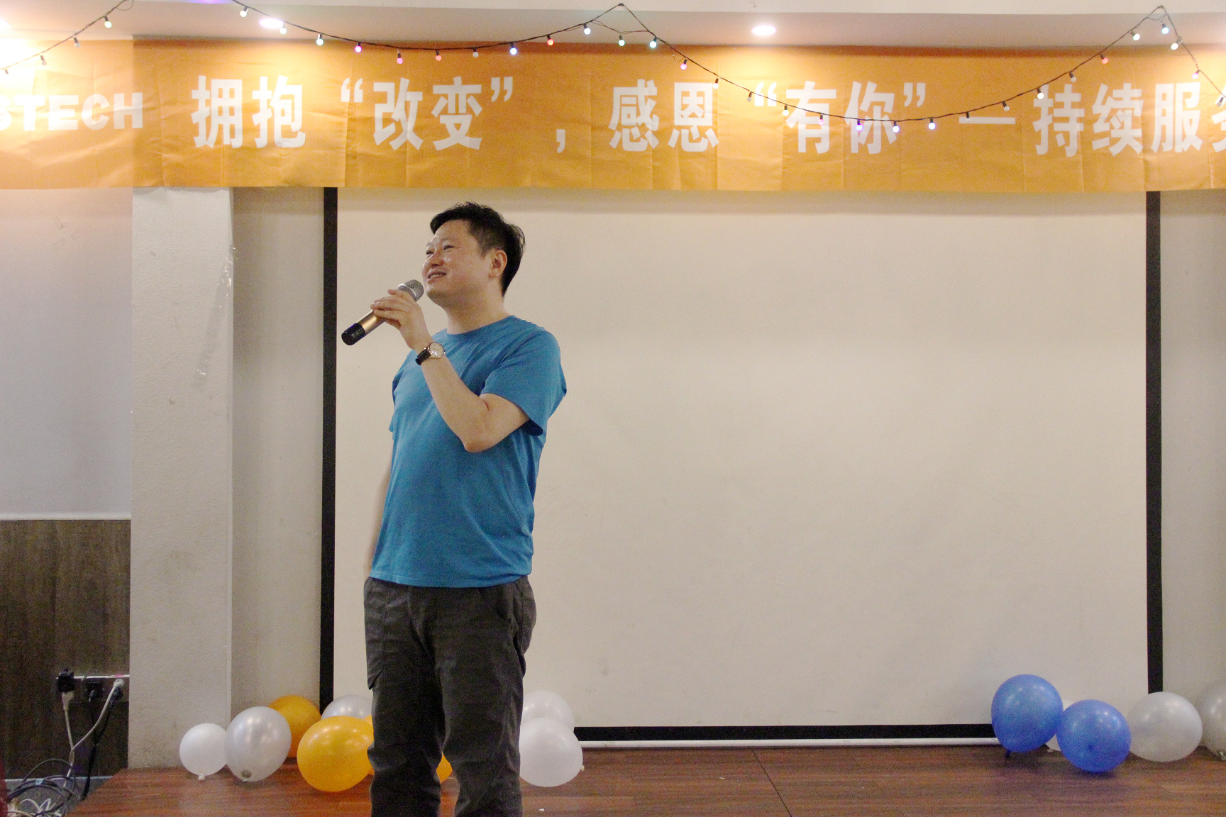 马上架线开始,对我们来说每年的这个时候都会非常的紧张。但是,我相信在我们的一起努力之下,定能克服这个艰难的日子。一年以上、三年以上、五年以上的兄弟希望你们带着我们的新员工、新团队克服这个艰难的日子,我们从来没有输过。从我们的50人发展到现在的2000人以上,我们的成长期得来不容易,也是每一个兄弟努力换来的。我希望能够发扬不怕苦的精神,坚定、努力,同时改变,感恩有你。我希望我们的每一个员工能够真正的理解改变,我们如果不改变,我们一定会被淘汰。我们要不停学习、不停进步。我们会一直在一起,会是一个非常完美的团队,感谢兄弟们!随后致以90度的鞠躬。