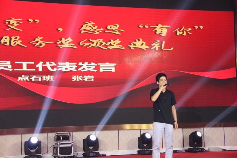 颁奖完毕后,我们邀请了项目管理部张瑞、点石班张岩、制造部查达意、软件研发部邓伟分别代表3-5年、5年以上老员工进行发言。
