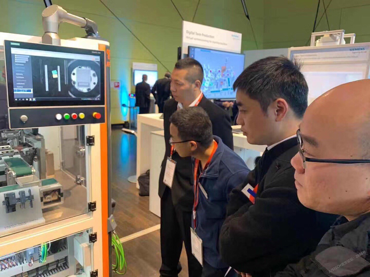 2019年11月26日至28日,在德国纽伦堡国际展览中心举行了一年一届的SPS展,集团董事长shark出席。在西门子展厅,汇集全球自动化行业精英,Justech和Siemens合作的第一台属于未来技术的设备位于西门子VIP展厅中央,展示了最新的数字双胞胎技术和Mini Drive控制技术.