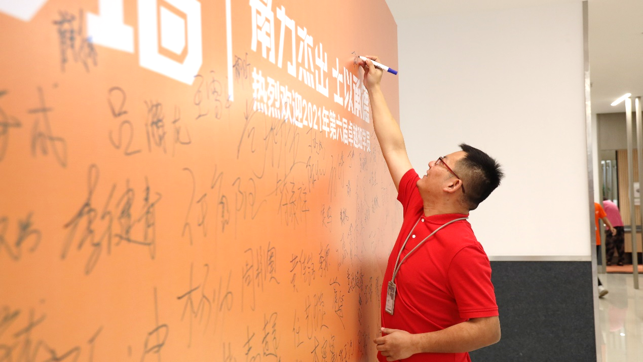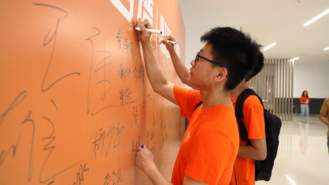 2021年7月19日上午,在昆山园区总部C1栋杰士德大学教室里,集团迎来了2021年第六届卓越班140余名新同学、新同事。青春热烈、风采飞扬,新进大学生们在“角力杰出、士以承德”的主题签名墙上留下了清晰有力的签名,这标志着杰士德集团第六届卓越班正式开营。