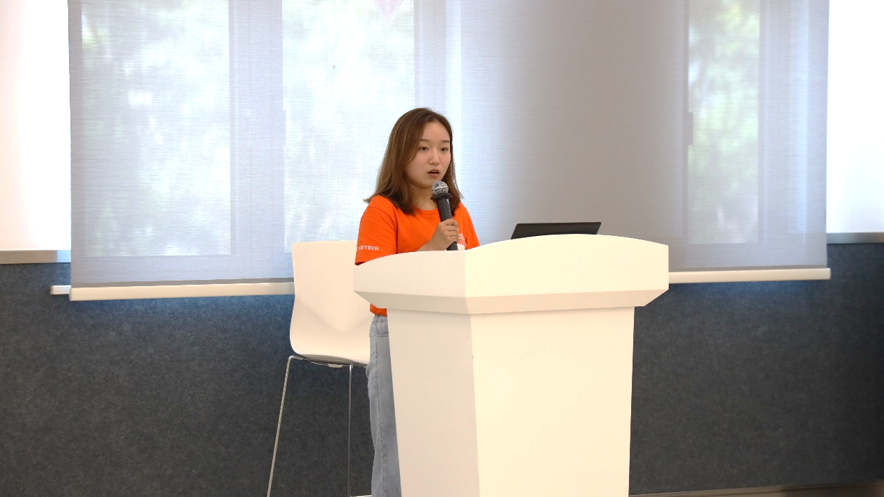 项目管理类管培生胡柳晗作为新进大学生代表发言。她承诺将以一颗学习不止、拼搏不息之心适应环境,以昂扬的斗志、百折不挠的精神和坚忍不拔的品格,尽快实现从学生到职场人的角色转变,成为一个坚定志向不放弃、攻坚克难不弯腰、坚定信心不退缩的杰士德新鲜人!