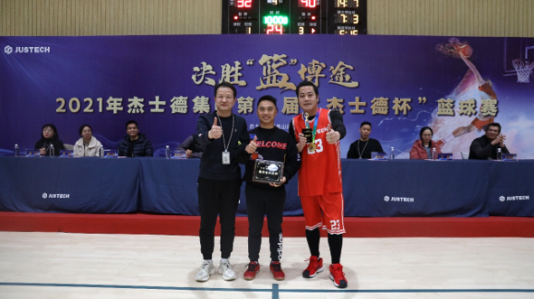 本次大赛组委会主任魏校长在闭幕式致辞中动情地说,为期9天的2021年杰士德集团第二届“杰士德杯”篮球赛今天胜利闭幕了,首先代表远在美国的集团景余祥董事长对取得优异成绩的球队和个人表示热烈的祝贺,也对本届篮球赛的成功举办、圆满落幕表示祝贺。非常感谢各参赛队、保障团队、大赛组委会的各位成员以及各位嘉宾等对本次大赛的关注与支持。同时,也希望我们能够把篮球场上展现出的拼搏的精神、必胜的信心、团队的信念带到工作中,正如我们本届篮球赛的主题——决胜“篮”博途!在新的一年里,希望我们的杰士德就是决战决胜,取得业务和组织能力建设的双丰收!再过二十多个小时,就是新的一年了,也代表景余祥董事长及各位主管,对在场的各位和集团的全体员工致以诚挚的问候与祝福,祝大家新年快乐、万事顺遂!