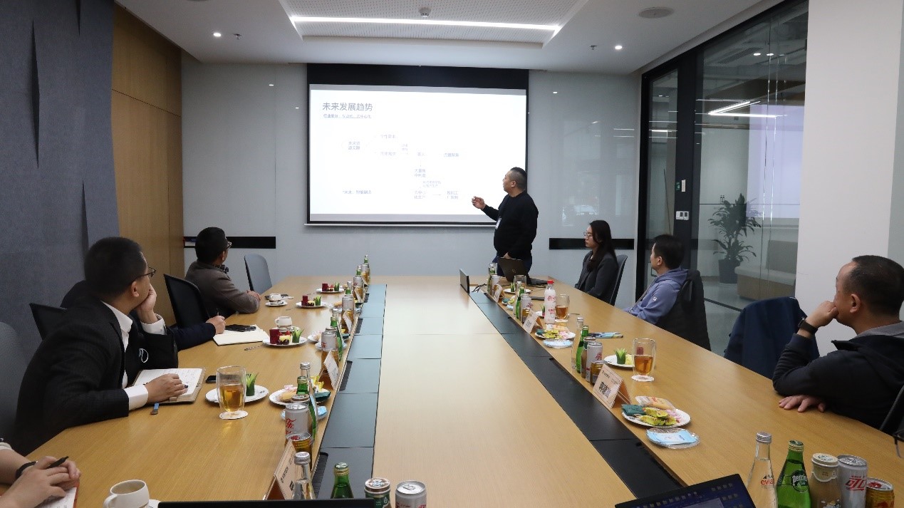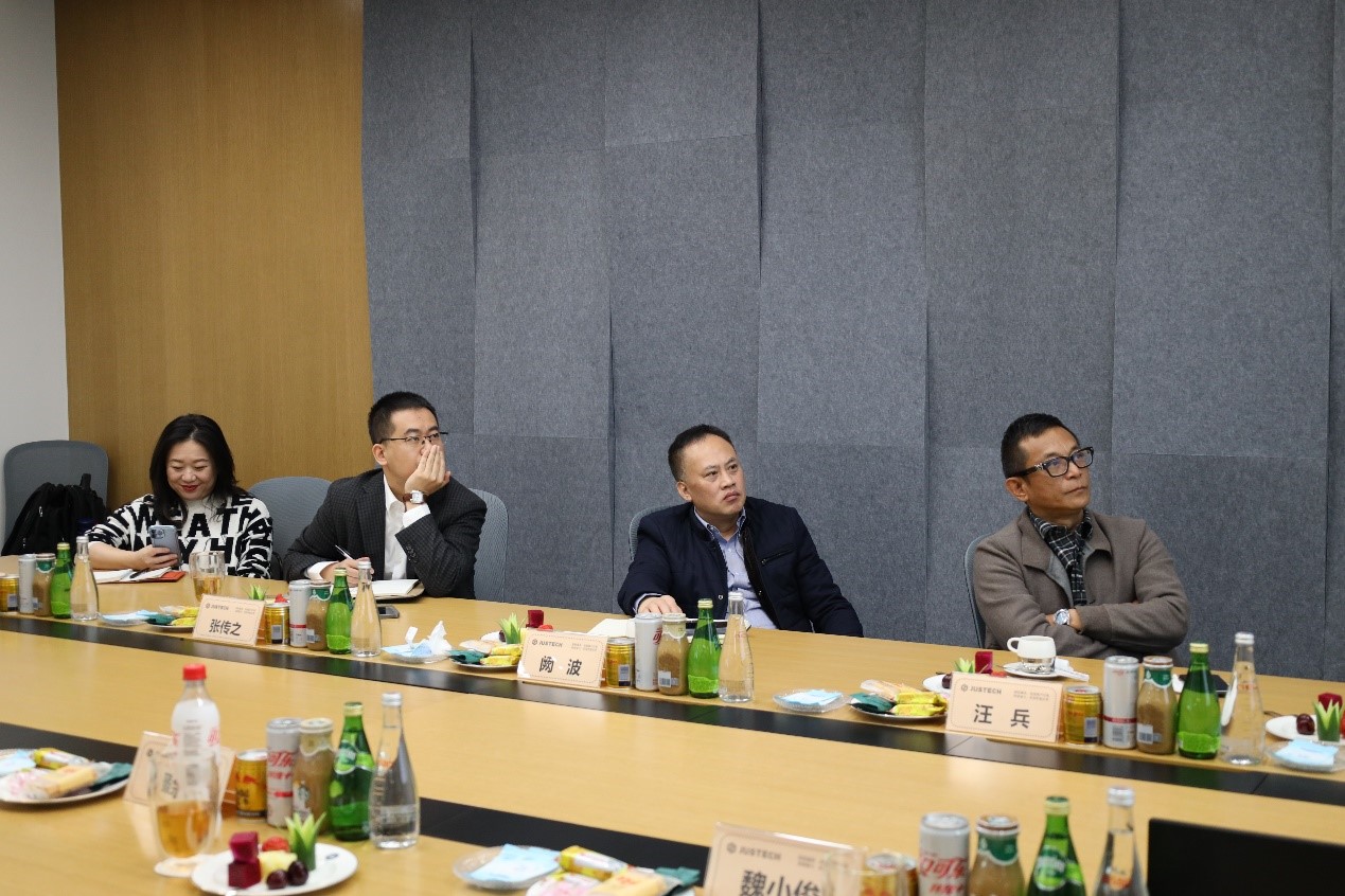 调研考察活动的第一站在杰士德集团昆山园区创新中心进行。在对杰士德集团基本信息、行业环境、产业发展现状进行了解之后,考察团一行还认真听取了景余祥董事长基于商业发展规律、现代科技发展趋势以及前沿技术应用的深刻洞察基础上搭建的杰士德集团宏伟商业蓝图。