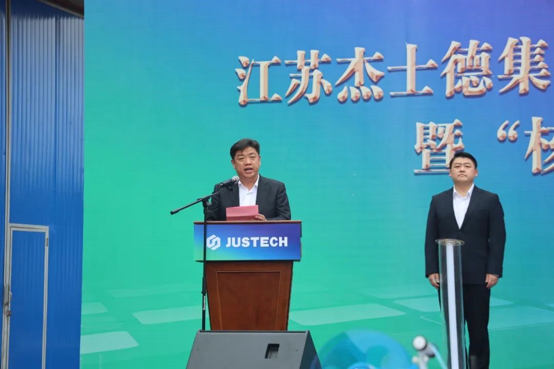 魏小俊副总经理代表杰士德集团及景余祥董事长对各位领导出席海安基地的投产仪式表示热烈欢迎,对集团概况进行了简要介绍。他回顾了自2020年以来,杰士德集团与海安从结缘、洽谈到项目落地的历程。他表示,海安政府敢为人先、追求卓越、求真务实的担当精神坚定了杰士德扎根海安、深耕海安、贡献海安的信心和决心。