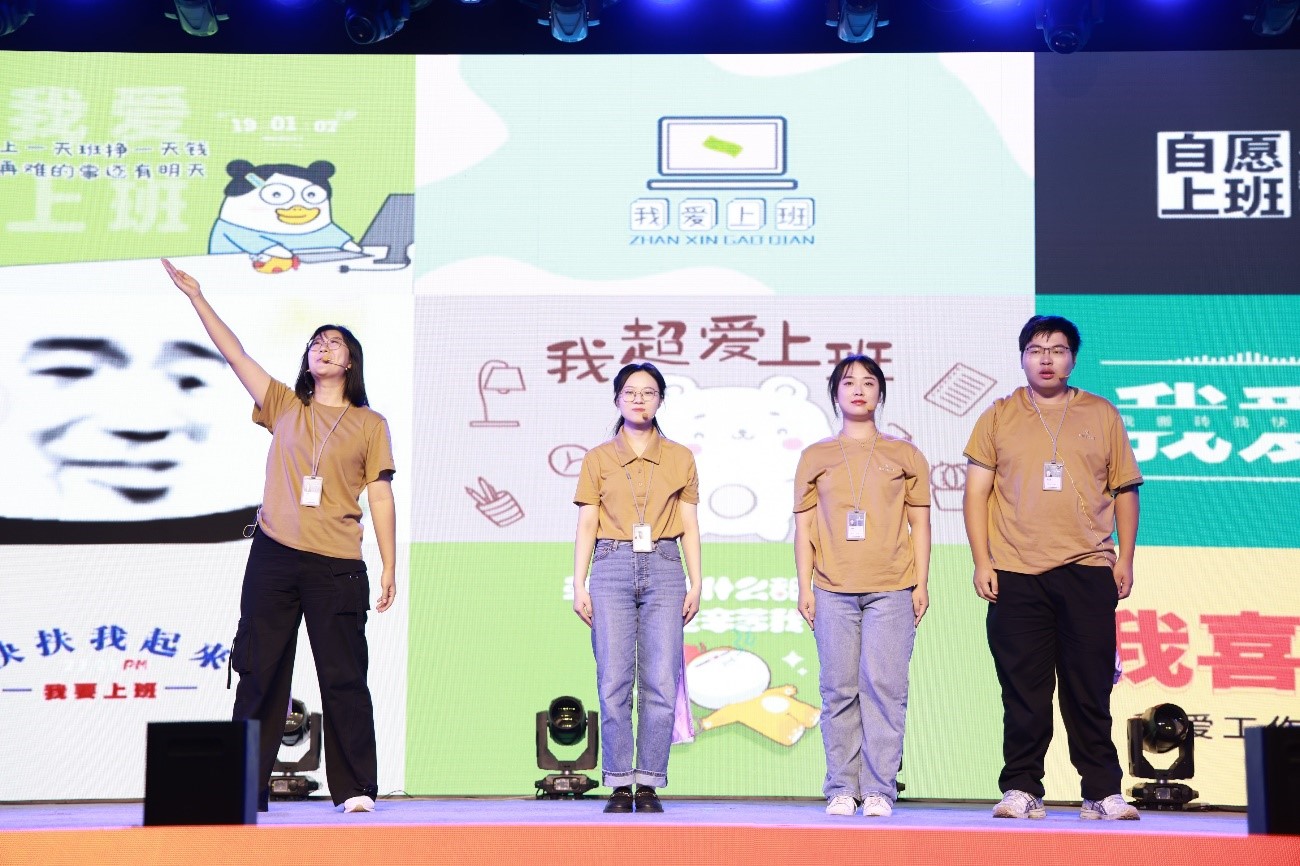 唯有相知,方能共同奋斗。第二篇章《相知·芳华的奋斗》在幽默朗诵《我爱上班》中诙谐登场。《我爱上班》以搞笑、欢乐的形式讲述了大学生们对上班的理解,引得全场阵阵欢笑。