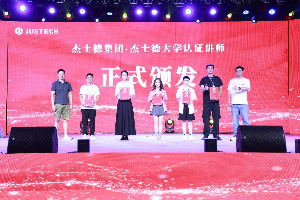 青蓝相接,薪火相传。为帮助新人快速融入杰士德大家庭,在本次卓越班训练营的培训组织与实施中,众多前辈及部门优秀讲师们踊跃协助与支持,保障了培训工作的圆满推进。在晚会上,集团为他们颁发了“最美讲师”、 “最美志愿者”奖项。同时,为彰显集团对人才培养的重视,践行“用最优秀的人培养更优秀的人”的人才培养理念,在绚烂的灯光和全场观众的注目下,集团为2024年度通过内部讲师认证的新晋讲师们颁发了聘书。