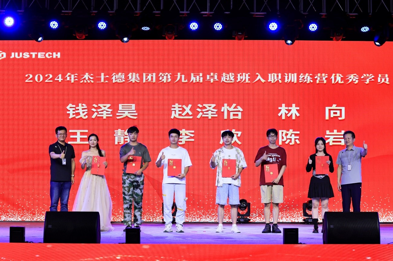 在培训考核中,共有6名学员以优异的成绩脱颖而出,被评为第九届卓越班优秀学员,两位董事长特助代表集团景余祥董事长为他们颁发了荣誉证书。杰士德集团始终坚持利益向奋斗者、价值创造者倾斜的价值观在培训中一如既往地得到践行——为了表彰和肯定优秀学员在一个月培训过程中展现出来的昂扬向上的精神风貌、聚焦目标勇往直前的顽强斗志,同时期待他们在未来的工作实践中,继续发挥敢于胜利、追求卓越的态度,不断在岗位上创造价值,景董事长在视频讲话的最后宣布为他们加薪并立即转正!