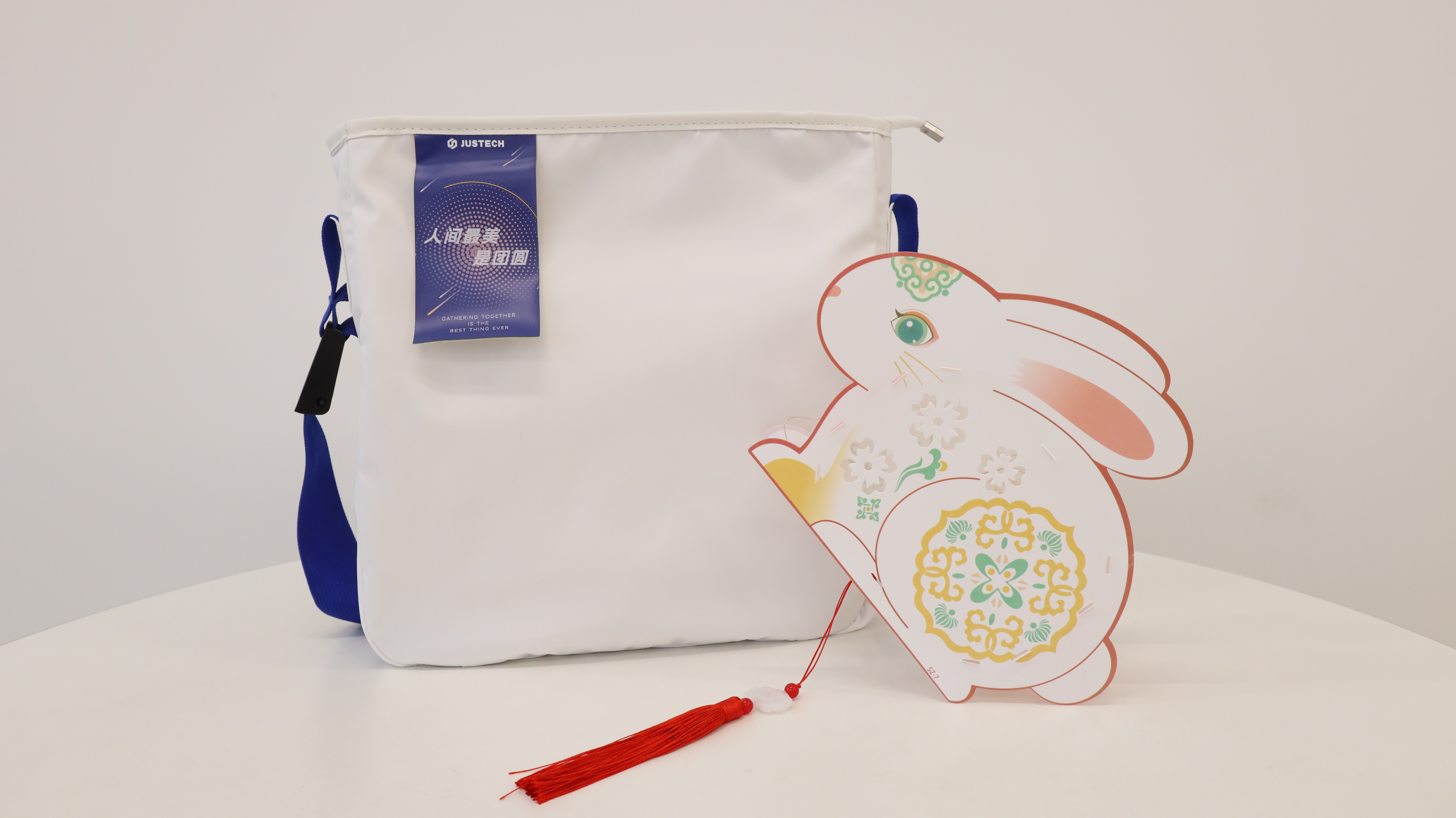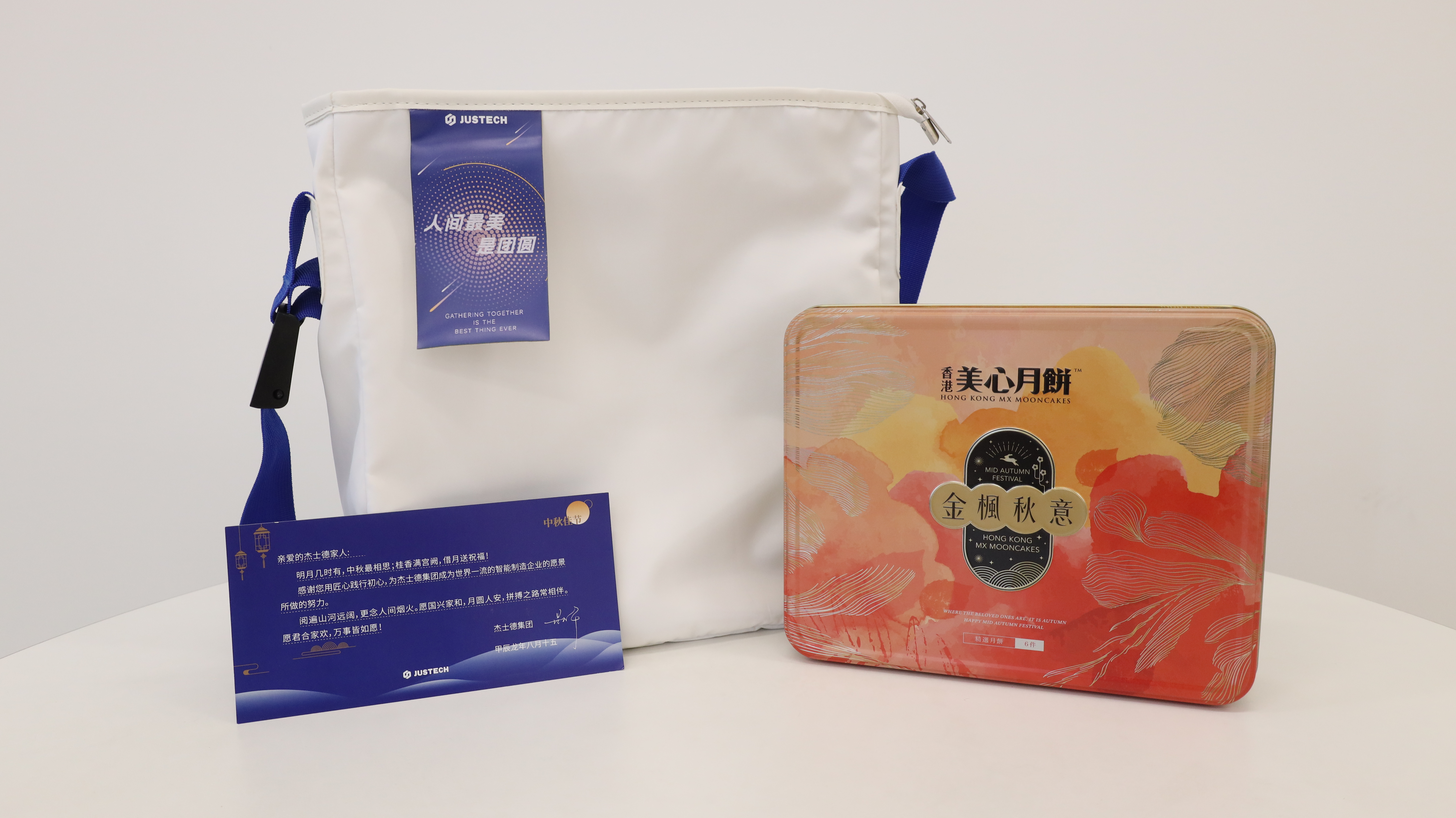 2024年杰士德集团中秋礼盒沿用品牌严选、美味升级的高端月饼品牌-美心金枫秋意月饼为主体;外包装则采用动感年轻的可调节多功能斜挎包——化身出行伴侣,将好心情打包!