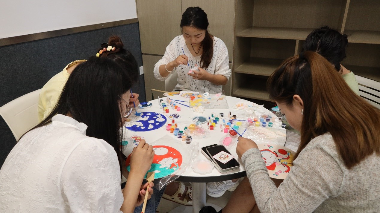 团扇,又称宫扇、纨扇,代表团圆友善、吉祥如意。大家沉浸在创造的乐趣中,精心调制出自己喜欢的颜色,在团扇上自由创作。随着时间的递进,一柄柄或清新淡雅,或萌动有趣、活力四射的团扇被创作出来,宁静美妙的画面彰显了杰士德人对传统文化的热爱,现场氛围愈发温馨而热烈。