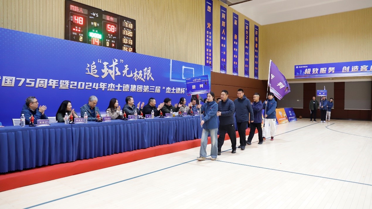 最后,本次大赛仲裁委员会主任、集团景余祥董事长宣布庆祝建国75周年暨2024年杰士德集团第三届“杰士德杯”篮球赛闭幕!
