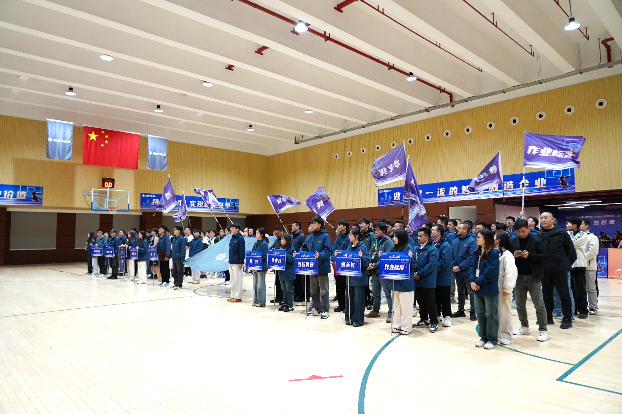 闭幕仪式上,伴随着豪迈的《运动员进行曲》,在四名意气风发的旗手的护卫下,集团司旗庄重入场,随后,裁判员方队、各参赛队迈着铿锵整齐的步伐,以昂扬的姿态步入场馆。