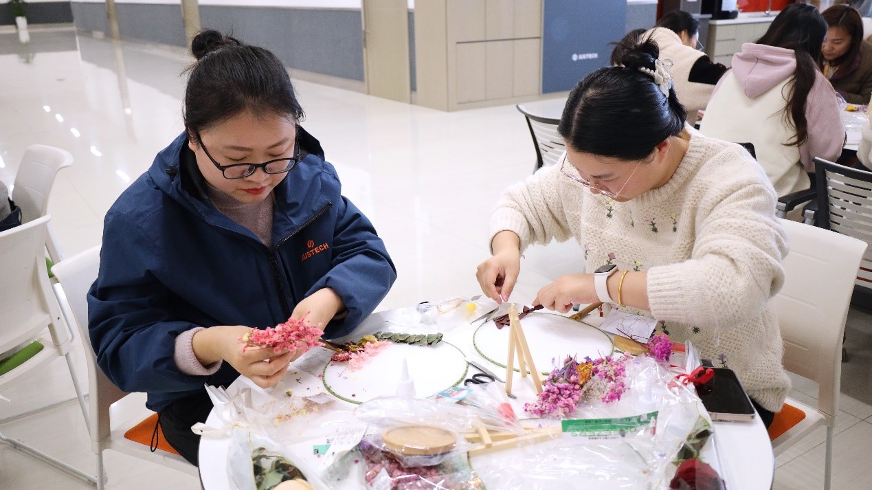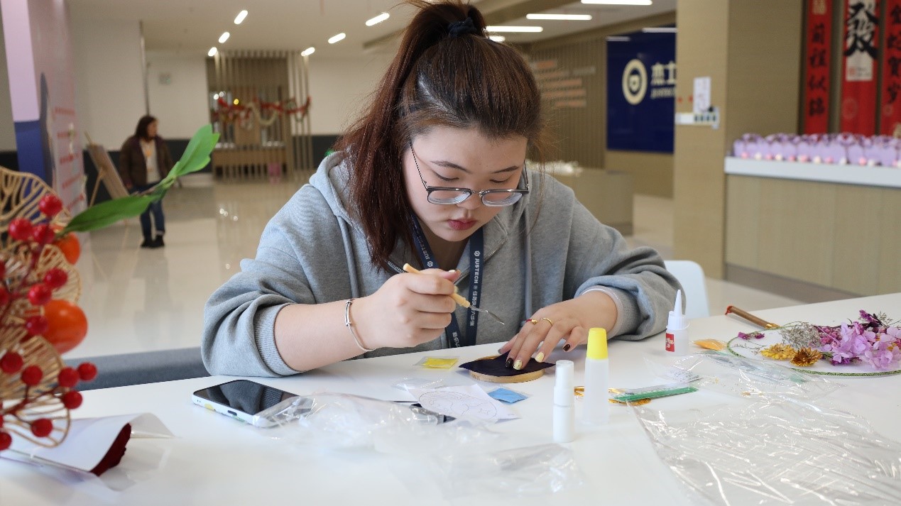 和往年一样,除了定制礼包的发放,杰士德大学还策划准备了“春风如你熠熠芳华”DIY创意活动,包含景泰蓝非遗掐丝珐琅杯垫制作和团扇花艺体验活动。大家可以随心挑选自己喜欢的样式,体验非遗手工的乐趣,创造出风格各异的作品。