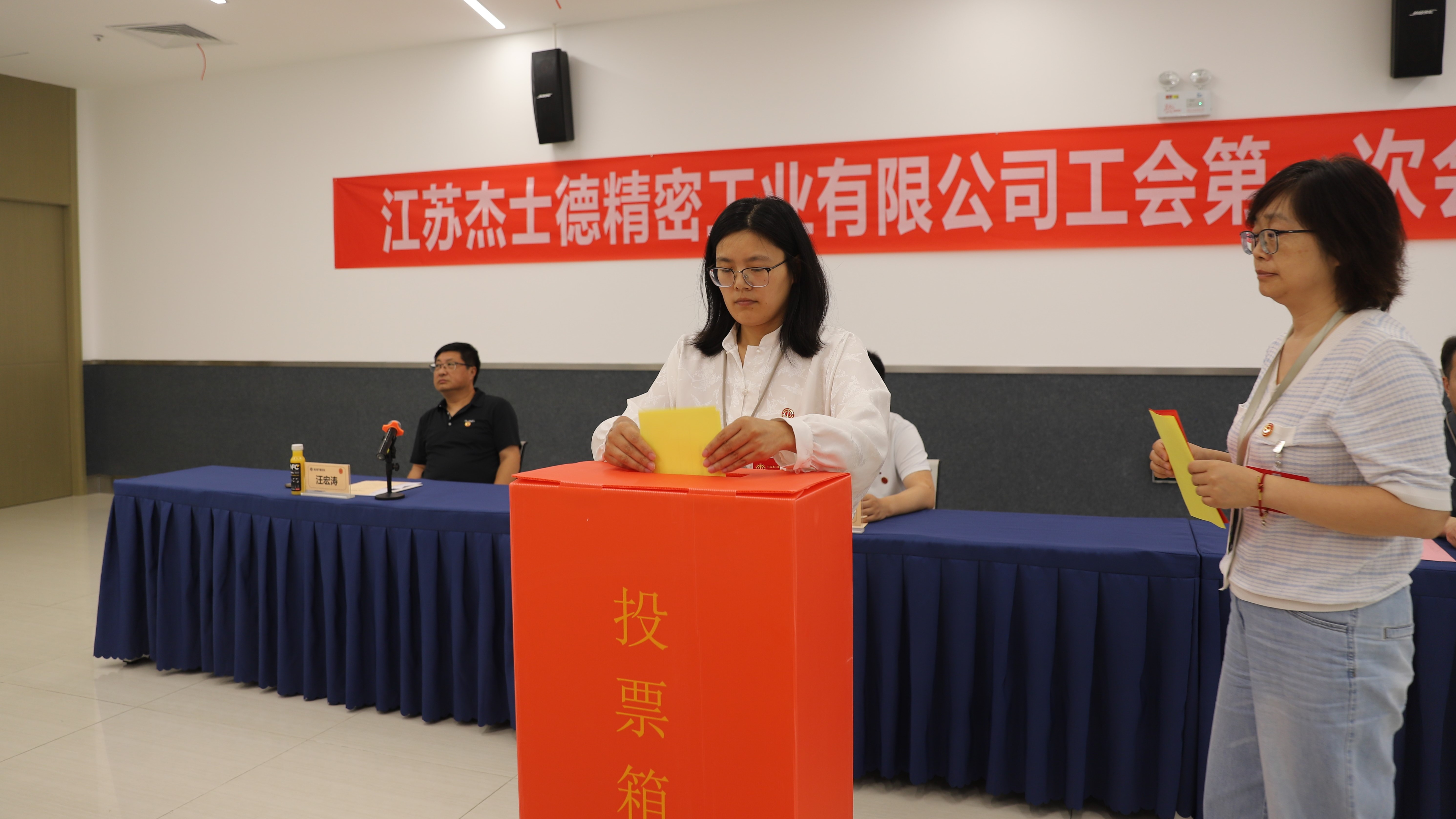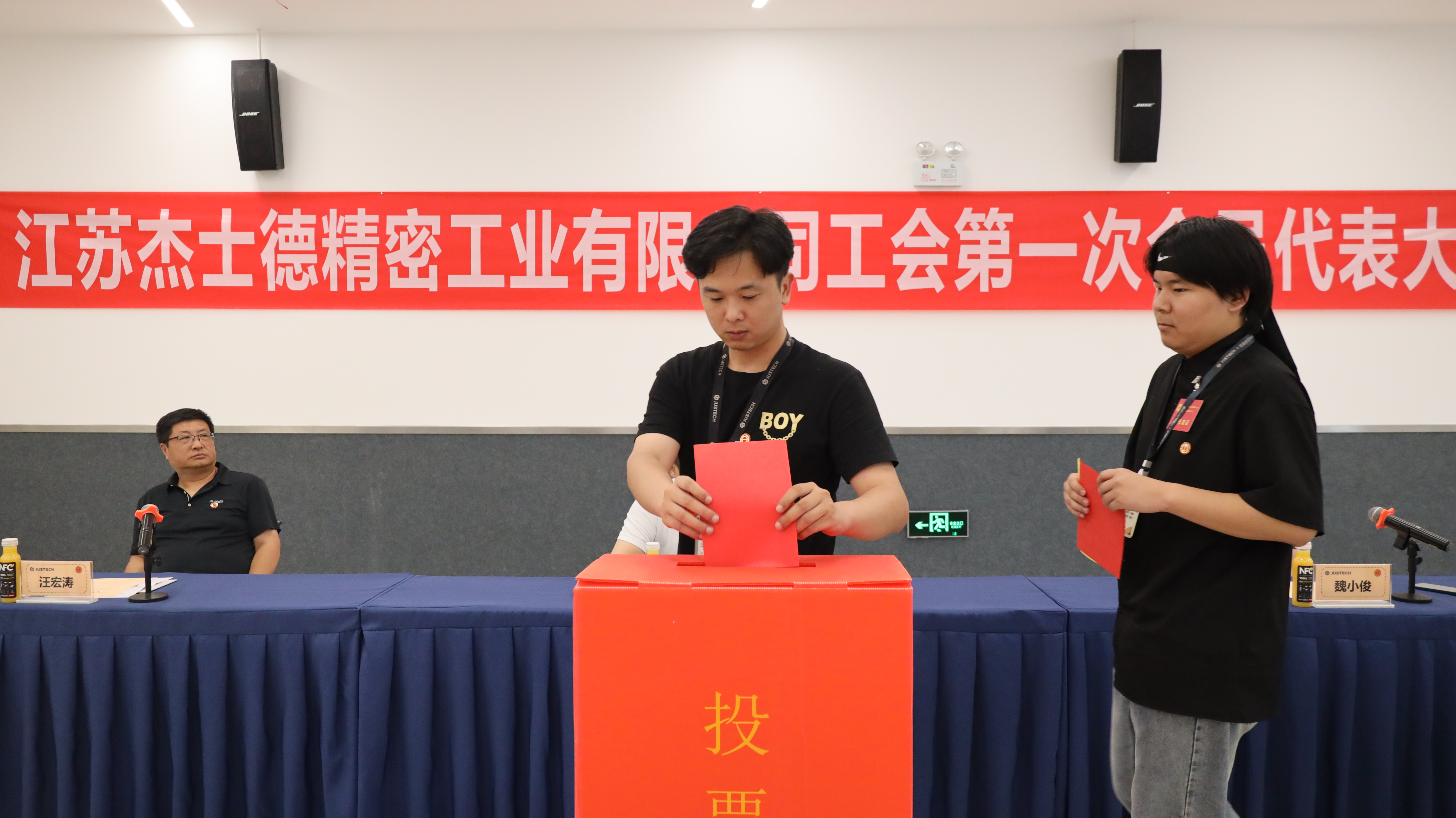 最后,巴城总工会汪宏涛书记发表讲话,对大会的顺利召开及新当选的工会组织成员表示祝贺。他肯定杰士德作为巴城镇领军企业,在推动产业升级、促进地方经济发展中的积极贡献,指出工会成立是职工政治生活及公司发展的重要里程碑,肩负凝聚职工、服务企业、维护权益的使命。汪书记提到,新形势下,工会需发挥桥梁纽带作用,团结职工、维护权益、构建稳定劳动关系。他希望新成立的杰士德工会在各方支持下助力企业提升创新力与竞争力,为巴城镇经济和谐发展作更大贡献。