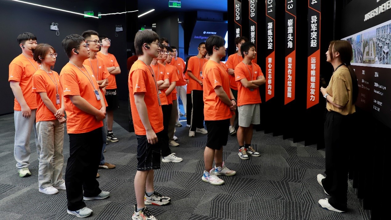 子公司介绍环节后,杰士德大学随即组织学员实地探访园区。在老师的引导下,学员们穿梭在杰士德大学的长廊里,从一张张图片中感受杰士德的发展历程,聆听他成长的声音。穿过科技感十足的技术创新中心,走进艾派科技高效运转的生产车间。他们亲历了繁忙却井然有序、宽敞明亮的生产作业区,也感受了绿意浸润、舒缓身心的休闲空间。这场贯穿工作与生活场景的沉浸式体验,向学员们生动诠释了一个真实、开放、充满蓬勃生命力的杰士德。