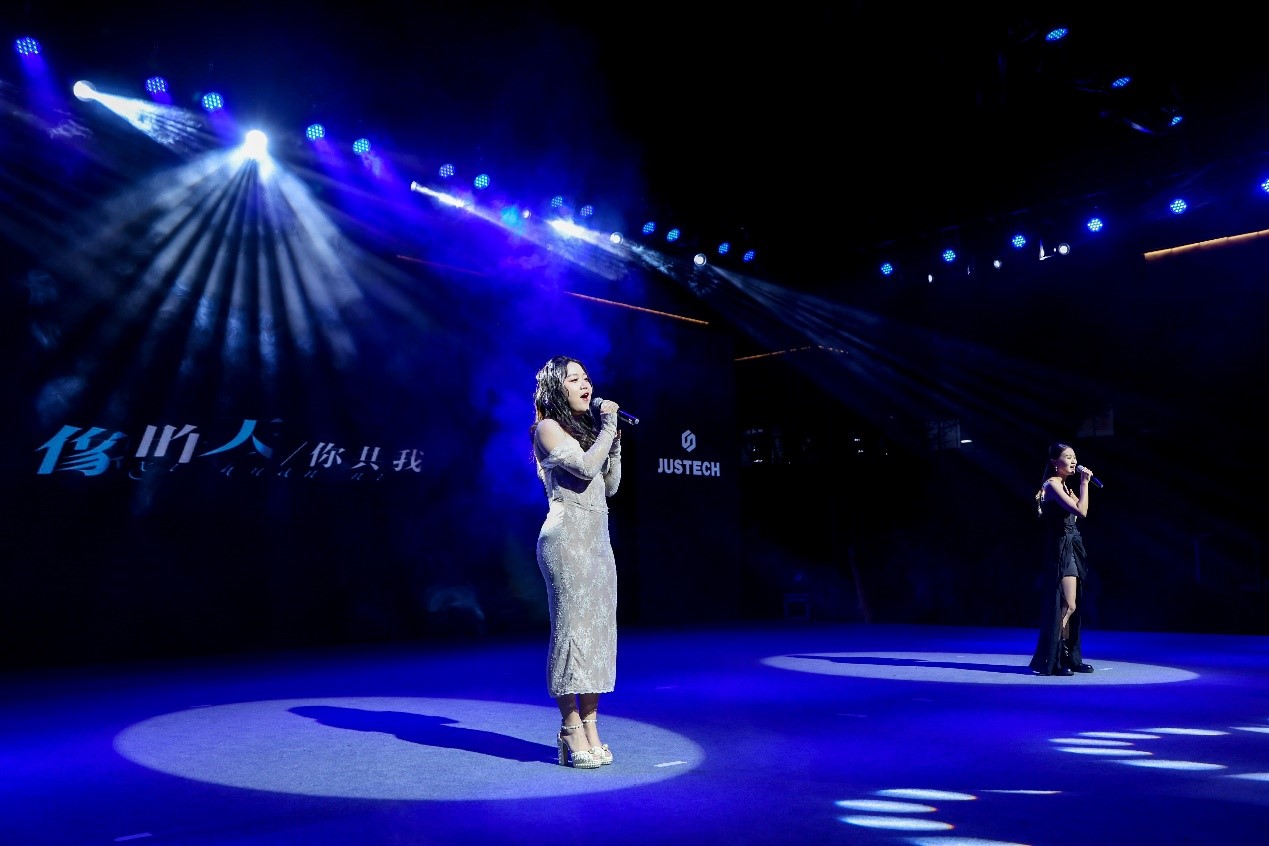 灯光暗下,音乐响起,一首《喜欢你》由两位卓越班学员共同演唱,熟悉的曲调响起,现场观众挥舞荧光棒,打开手机闪光灯,共同感受这首歌曲带给大家的温暖与共鸣!