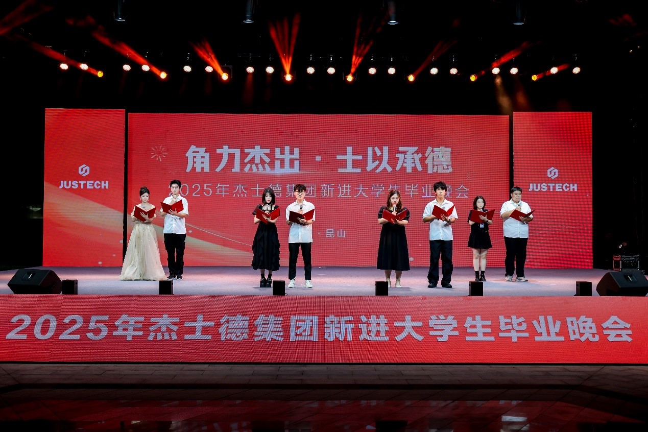 从荣誉的舞台到内心的感动,连接我们与未来的,是坚定的信念,是不懈的追求,更是每一位追梦者心中不灭的理想之光。聚光灯下,汇聚着这样一群追光者——他们既是支撑企业发展的中坚力量,是卓越班中引领方向的领航者,更是怀抱理想、整装待发的明日之星。诗朗诵《与杰士德共赴星辰》动情讲述了杰士德新人们怀揣着炽热初心与远大理想,以奋斗为笔,以担当为墨,共同书写属于我们的时代宣言:向未来,出发!