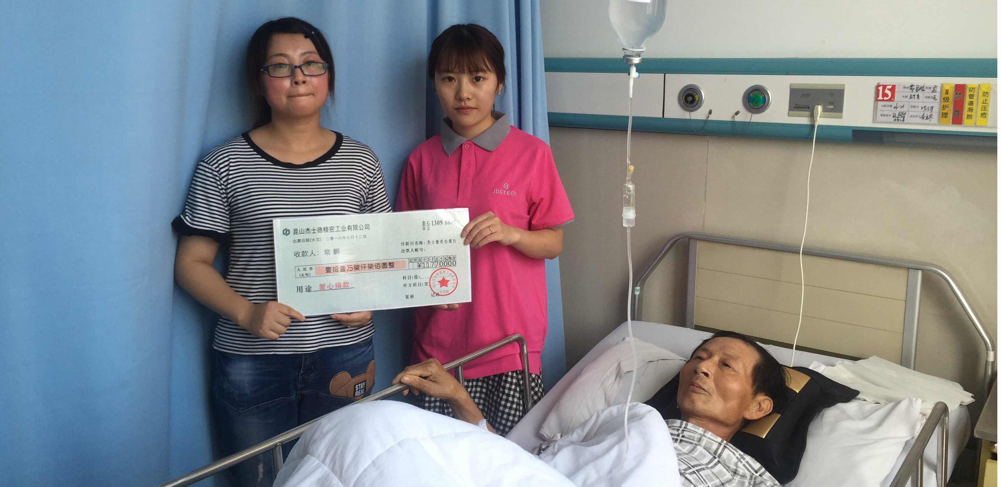 此次随小编一同去的还有江南平台部总监Andy和常鹏本部门助理刘井燕,他们细致的跟常姐姐了解了常爸爸的情况,并告诉常爸爸一定注意身体,配合治疗,好好养病。随后,小编将所有爱心款项全部交给了常姐姐,常爸爸几度感动的流泪。