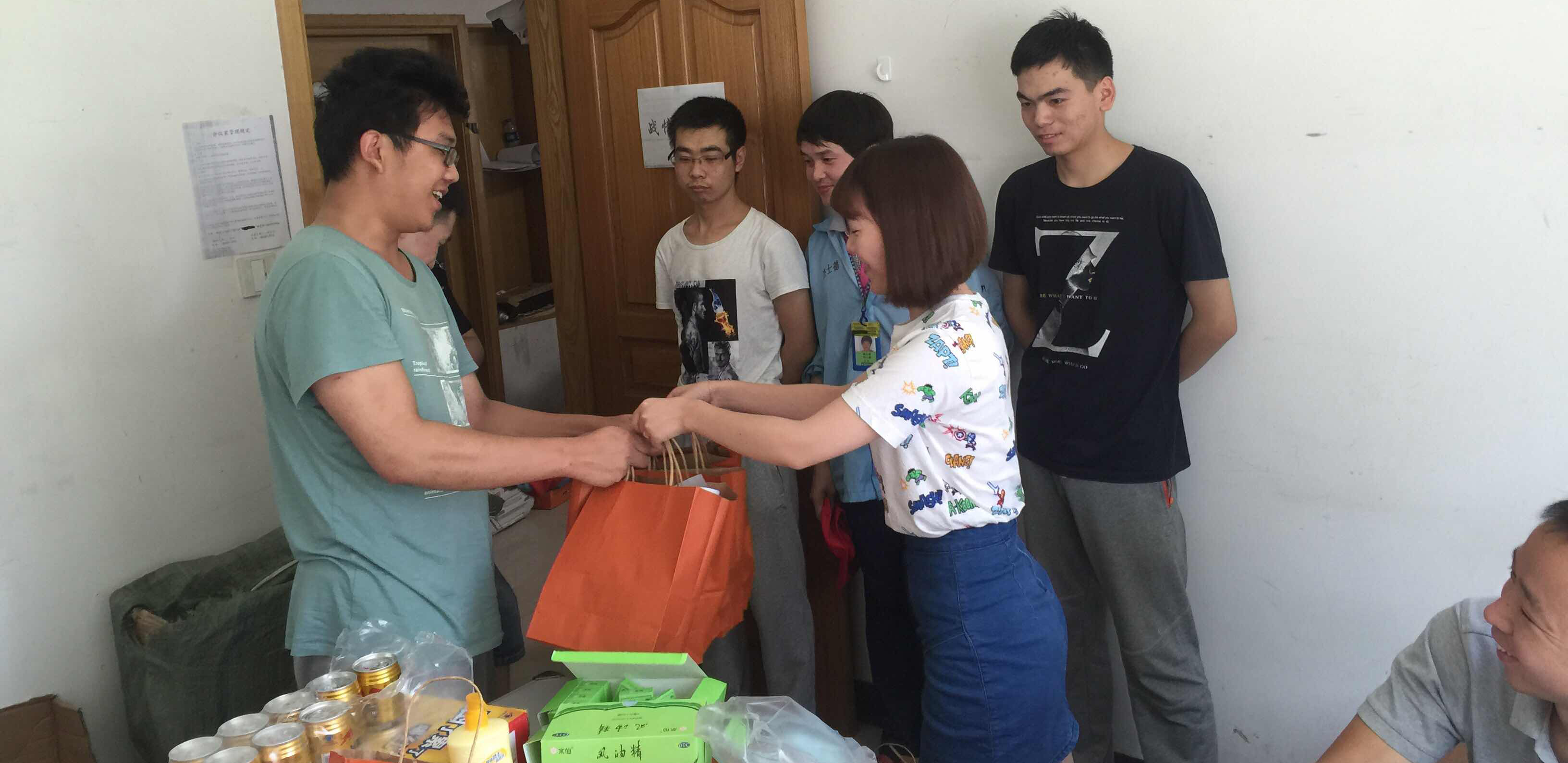 各项目地的小伙伴们就像辛勤的小蜜蜂,不分昼夜地挥动着青春与激情的翅膀,用智慧和汗水去渡过一重重难关,完成客户交付的一项项任务,为我杰士德大家庭采花酿蜜。为了向我们的“一线战士们”道一声辛苦,家里组织了以小编和Eason为首的慰问团,带着家里对在外拼搏的小伙伴们的感谢和问候,为各项目地小伙伴们送去家里精心准备的“清凉四件套”。