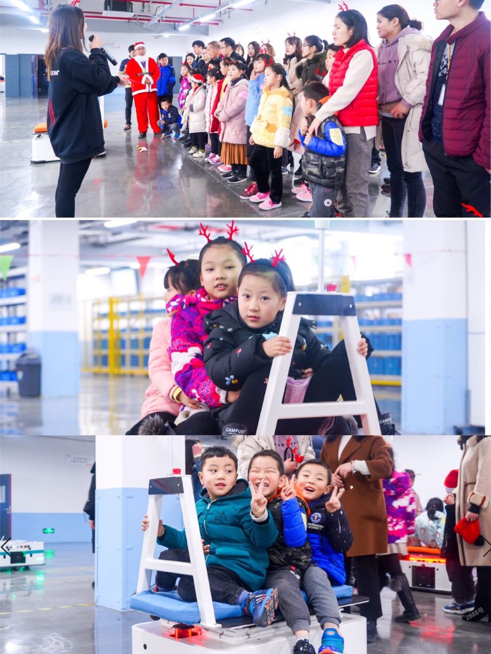 最后一站,我们来到了艾派科技。小朋友和爸爸妈妈一样,经过严格的安检后进入到了车间。随后,小朋友们在工作人员的指导下有序坐上由艾派科技自主设计研发的AGV小车,体验了一把“自动驾驶”的感觉。