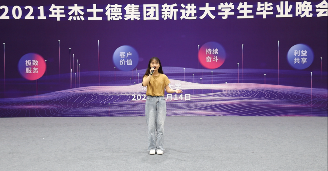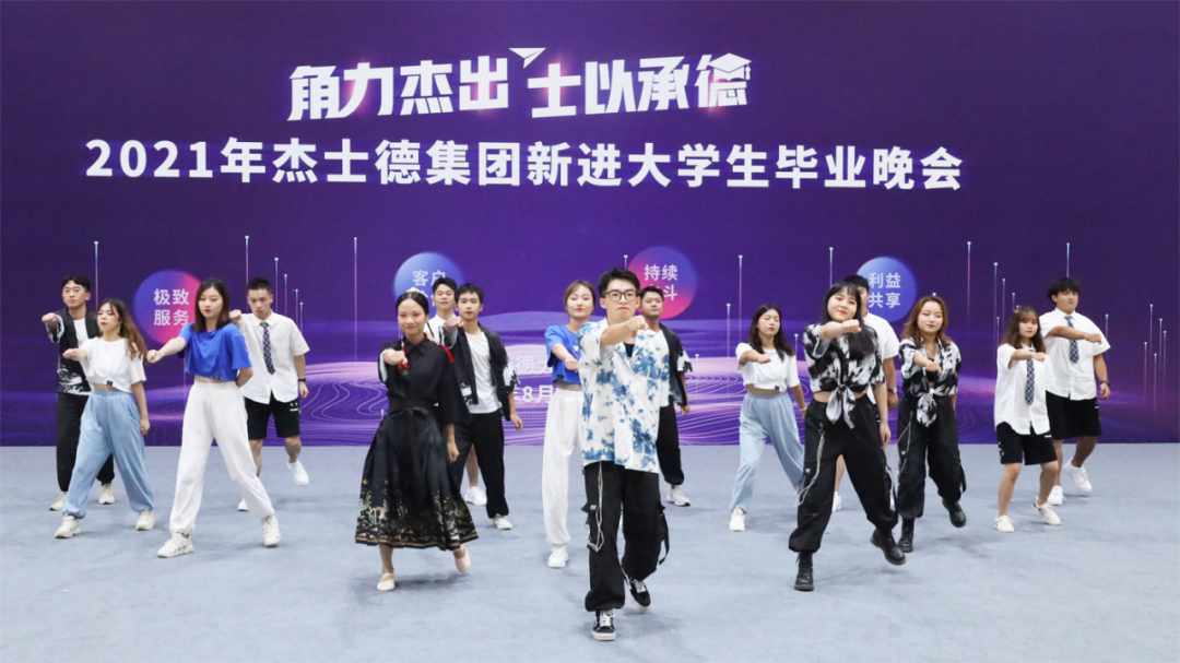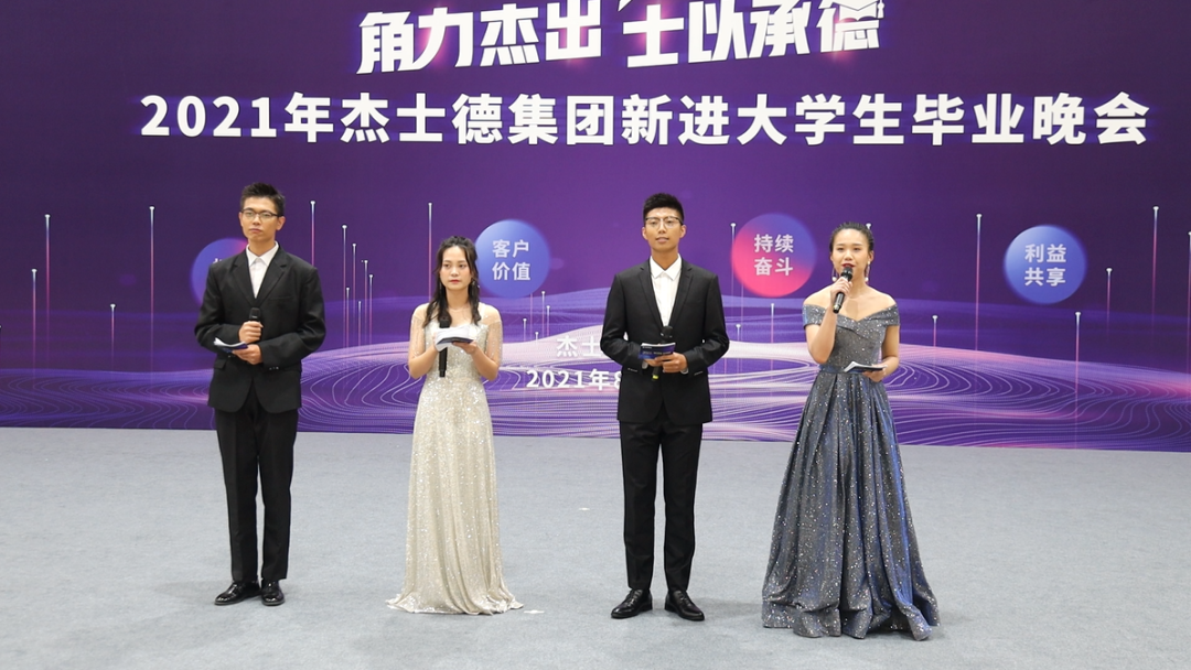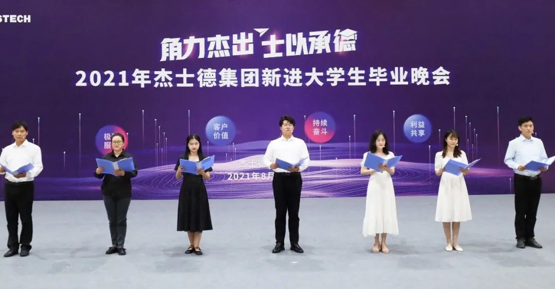 星光不问赶路人,时光不负有心人。8月14日下午13:30 ,2021年杰士德集团第六届卓越班新进大学生汇报演出于园区室内篮球场举行。杰士德集团创始人、董事长、杰士德大学校长景余祥,董事长特助、江南平台副总经理、杰士德大学常务副校长魏小俊,董事长特助、集团江南平台中心副总经理杨易乔作为嘉宾代表受邀出席。
