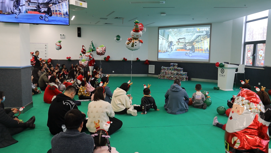 游览的终点汇集到了创新中心的报告厅,一场有关愿望、热情、团圆的圣诞主题电影《圣诞·亚瑟》在这里上映,配着圣诞的节日气氛和圣诞老人派发赠送的小零食,小朋友和家长们,随着电影主人公的圣诞历程,体验一次不一样的感动之旅。
