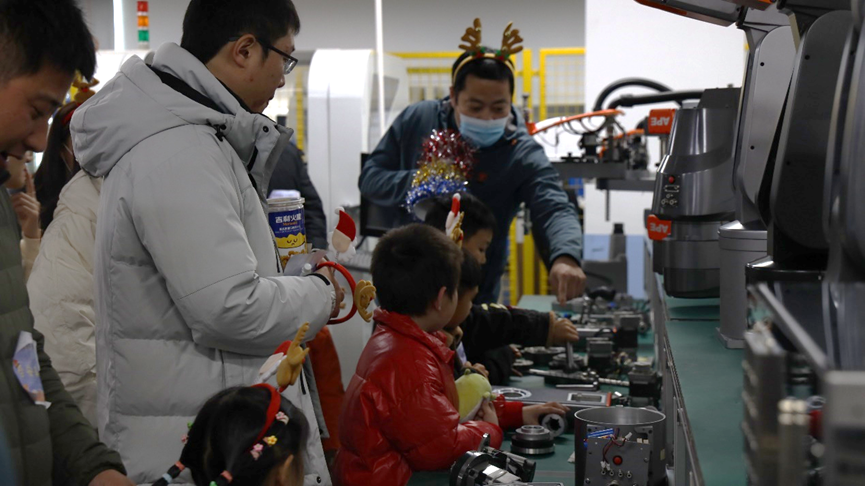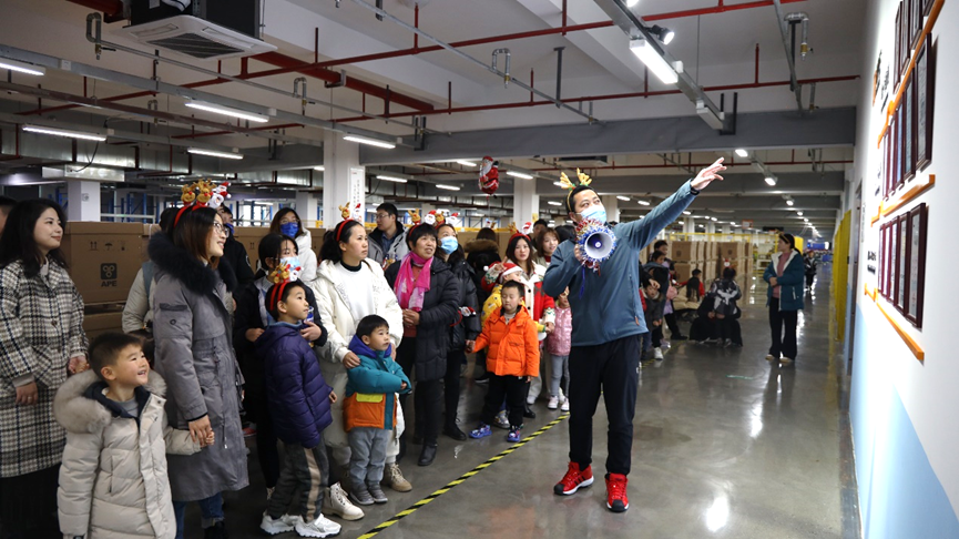 在流淌的传统圣诞音乐中,活动场地转换,从传统走向科技。为了让小朋友们感受智能的力量,了解科技的神奇,探索科学的兴趣,本次活动中我们加入了“走近机器人-参观艾派车间”的环节。作为集团旗下聚焦机器人业务的一家子公司,艾派科技也提前做足准备来接待这群对科技充满兴趣的小客人,艾派科技客户经理陈杰作为讲解员为各位小朋友带来了贴心的说明和讲解。