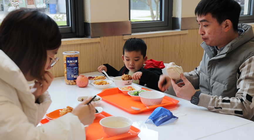 参观结束后,大家有序来到充满圣诞风情的餐厅亲子专属用餐区,享用集团为大家精心准备的节日餐及儿童餐。