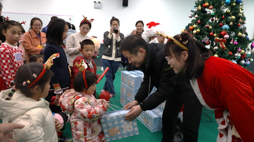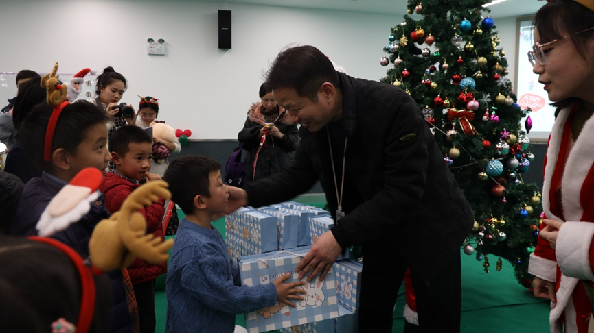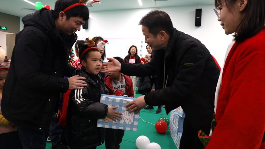 热火朝天的小游戏以后,杰士德集团董事长特助、江南平台副总经理、杰士德大学常务副校长魏小俊代表集团以及远在海外的景余祥董事长,给活动现场的杰士德员工和家属及小朋友送来了节日的祝福,他和圣诞老人一道,将圣诞伴手礼一一发放给现场参与活动的家庭,孩子们的嘴角都洋溢着幸福的微笑,画面温馨而又美好。