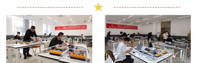 在考试前,杰士德大学同事们做了详尽的安排,准备了1个理论考场&技能试题1(画图)考场、1个技能 试题2-试题3(接线&编程调试)考场、2个论文答辩考场(答辩A组&答辩B组),共4个考场。每个考场均配备了3名考评员,考评员队伍由杰士德大学8位成员&峰之建软件研发中心6位专家组成,专业能力和专业素质过硬,在考试中展现出了考评员的风范和能力。